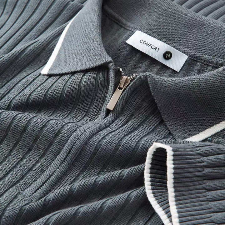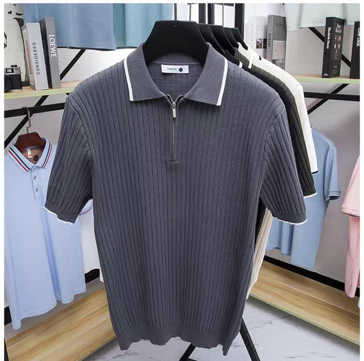 - Crafted for those who appreciate duality - a contrast polo neck with cuff tipping and a contrast metal zipper that adds charm to your look.